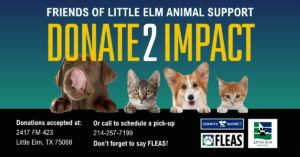 Friends of Little Elm Animal Support (FLEAS) is an all-volunteer 501(c)(3) nonprofit dedicated to improving the lives of all animals in the Little Elm area through community programs, adoption-focused marketing, and compassionate partnerships.
