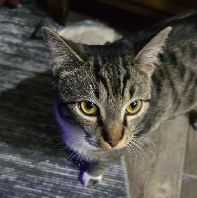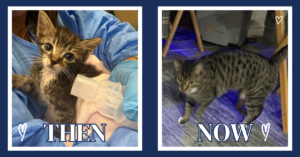 Now she is about 9 months old and plays with our other 2 cats, Heidi and Bandit. She loves to play fight, chase a laser light and jumps up all day long for cuddles. She has become the apple of my husband’s life, but still thinks I’m her mom. She sleeps with me and Heidi, harasses Bandit and is very much loved.